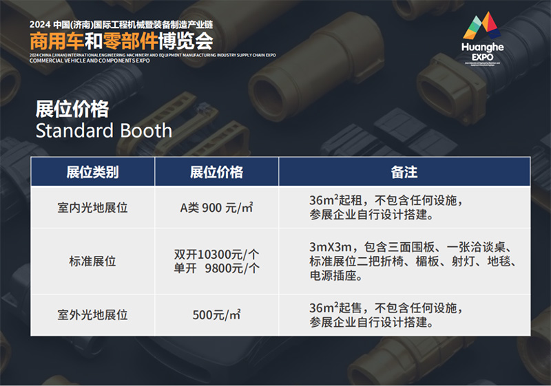 山东省汽车配件商会是本届展会的联合主办单位,并在N6馆厅单独设立“2024中国济南商用车和零部件润滑油博览会专用展区”,本展区共计150余个展位,其中9m²标展110个、36m²特展23个、54m²特展12个、72m²特展2个、196m²特展3个等。根据参展商意愿,如购买相邻展位的,可与组委会联络拆除挡板合并展位。