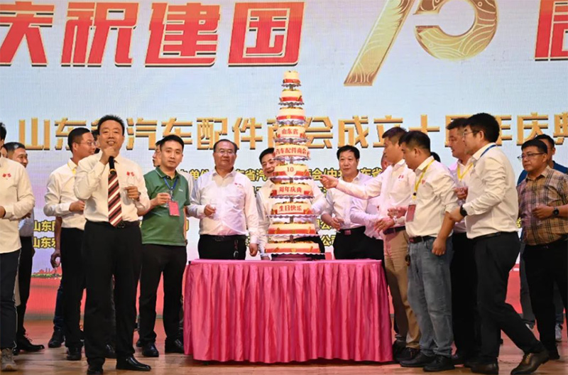 在喜悦的歌声中,山东省汽车配件商会会长倪付庆携副会长领导们向参与庆典大会的全体会员嘉宾致词敬酒,值此商会成立十周年之际,伴随着生日歌,商会领导、来宾共同切下了生日蛋糕,标志着商会踏上新的征程,再创新的辉煌。 汽配行业发展创新,离不开新鲜血液的加入,商会开拓创新,成立了山东省汽车配件商会商学院,为汽配行业培养、输送人才。山东省汽车配件商会会长倪付庆、山东省教育厅教育发展中心研究员邵天宇主任共同上台,为商会副会长、山东省汽车配件商会“商学院”院长韩瑞杰授颁了《山东省汽车配件商会商学院》牌匾。商学院的成立,标志着商会走上了更开拓的发展道路。