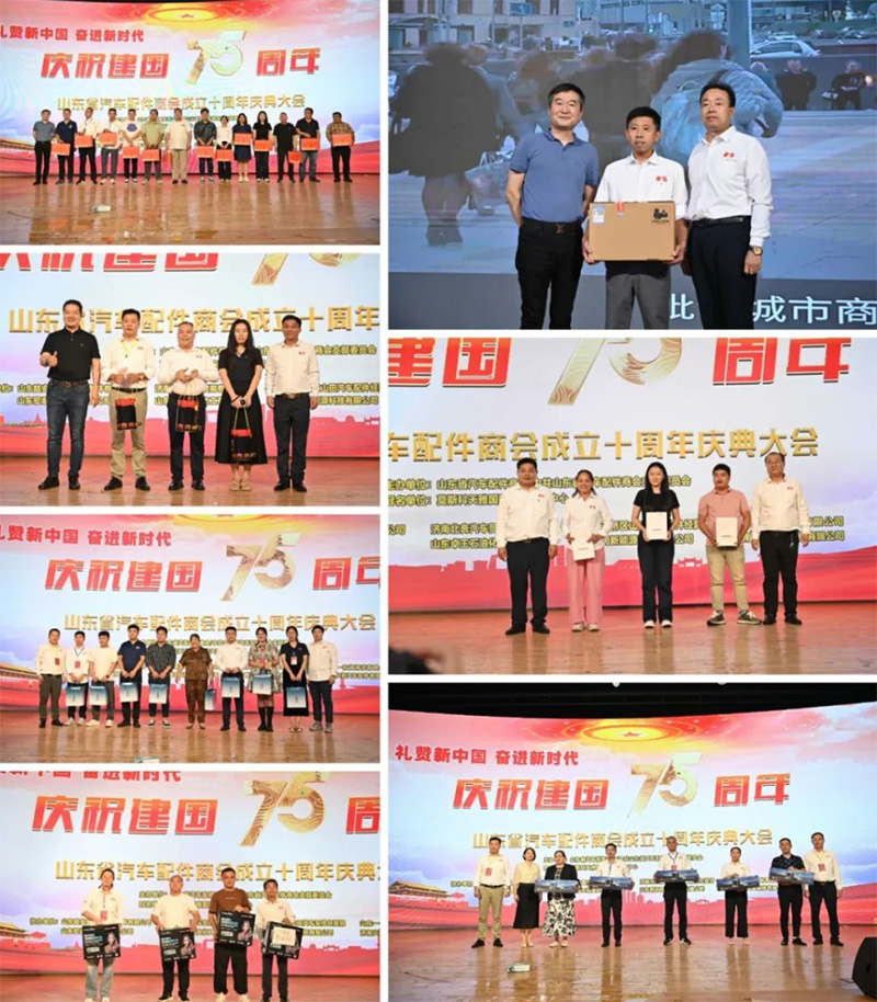 2024年9月10日下午18时,“礼赞新中国、奋进新时代”——庆祝建国75周年暨山东省汽车配件商会成立十周年庆典全体会员大会在祥云大酒店四楼多功能厅成功举办。省、市、区各部门领导,离退休老干部友好商协会、500余家会员单位计千人欢聚一堂,共赴盛会。