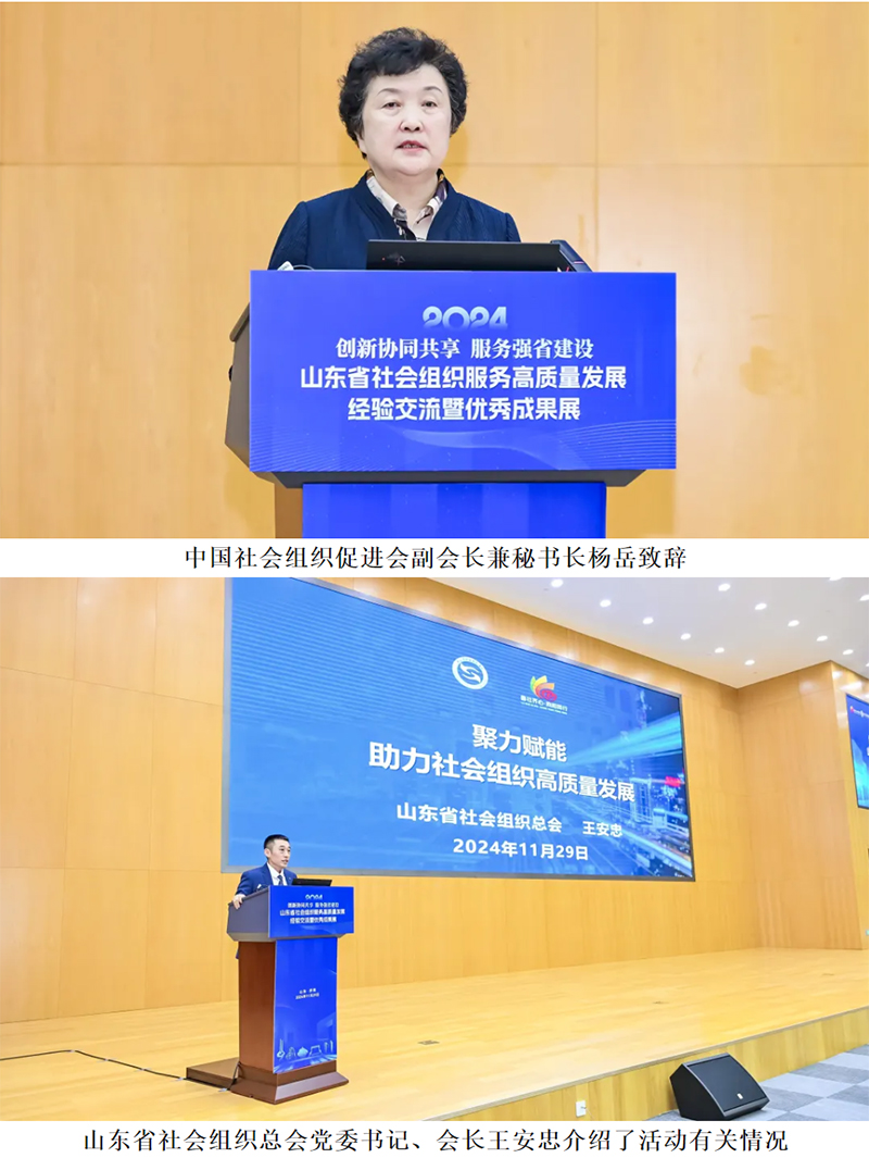 2024年11月29日,以“创新协同共享、服务强省建设”为主题的《2024山东省社会组织服务高质量发展经验交流暨优秀成果展》在济南浪潮科技园成功举办。