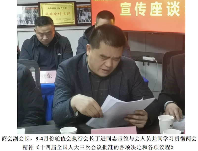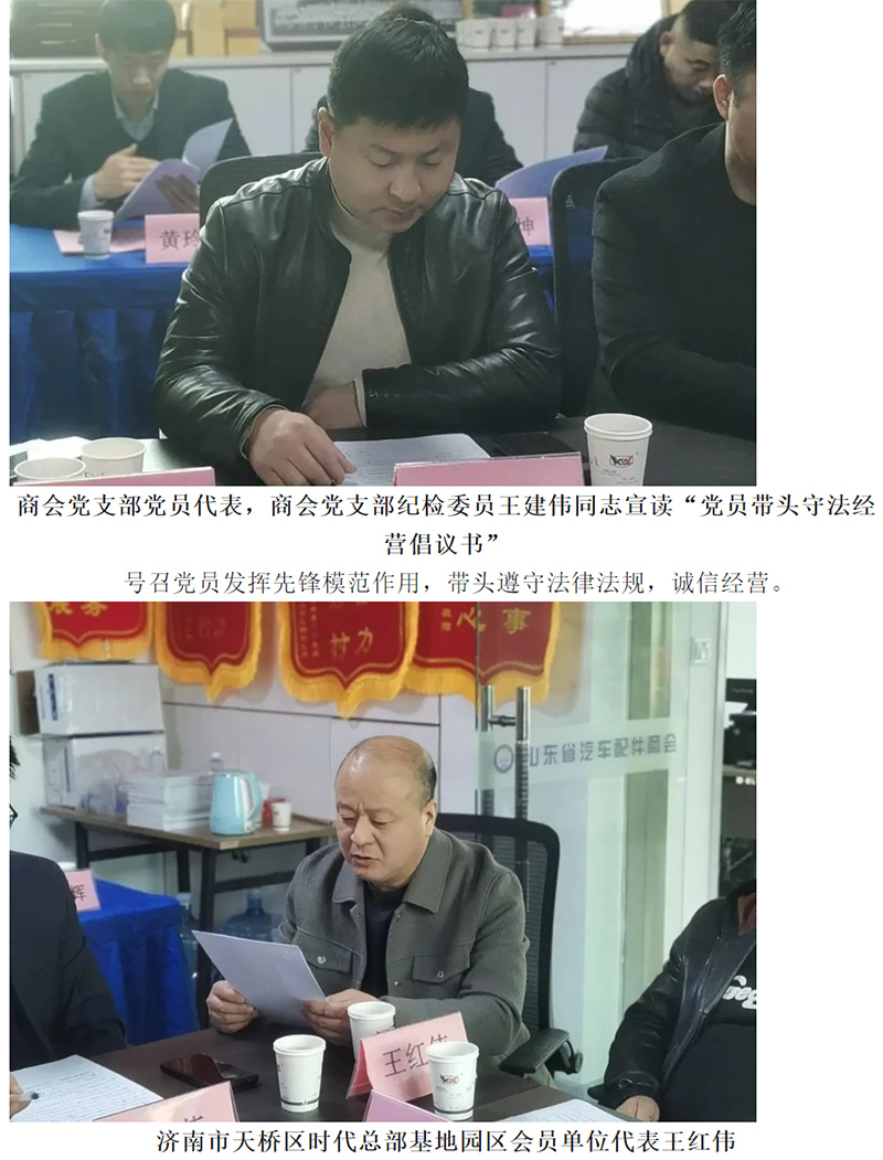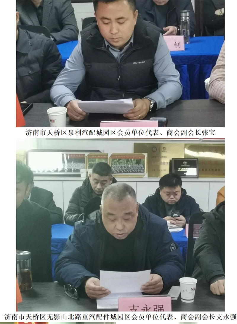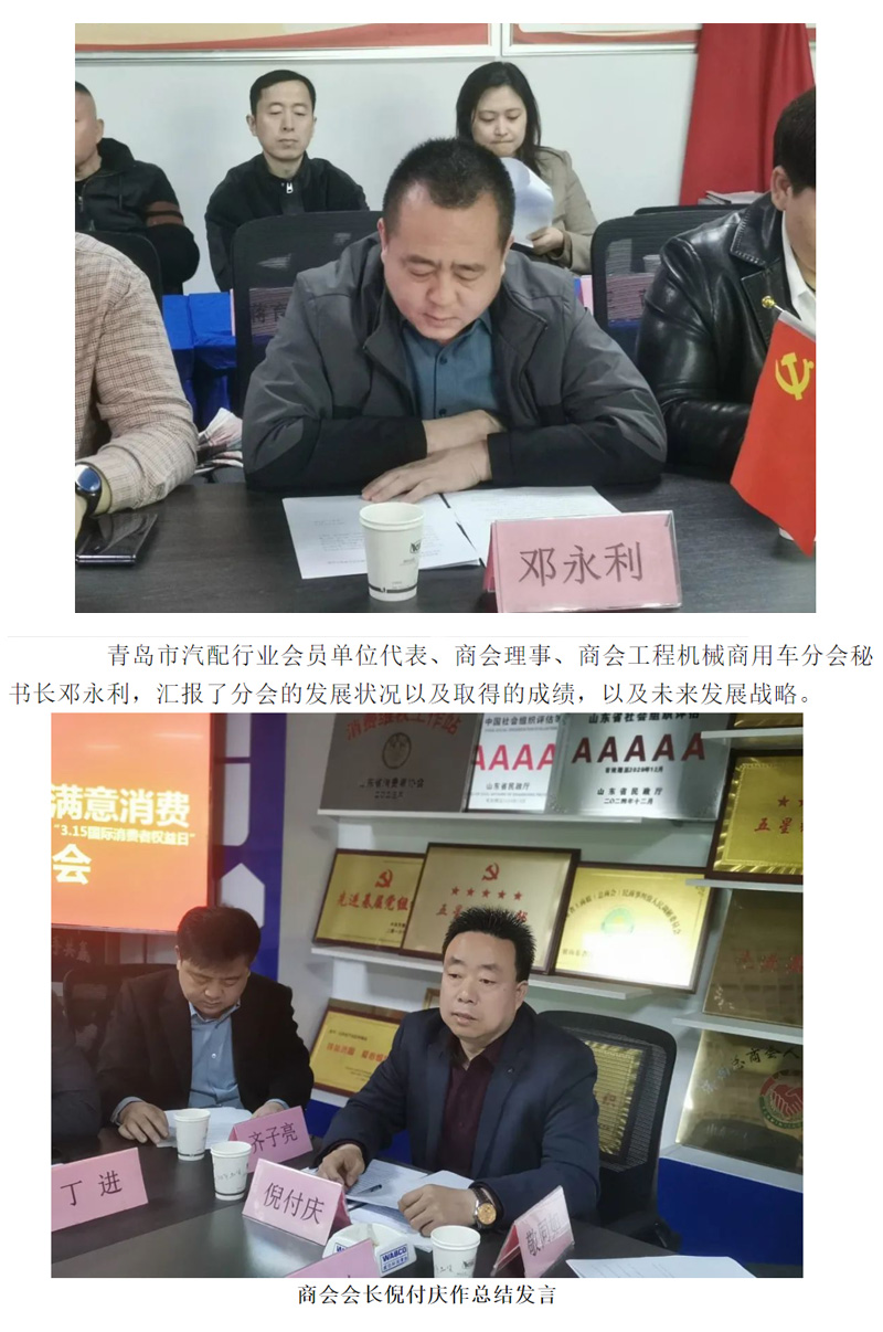 会长倪付庆就商会当前出现的不合理问题,根据实际情况,进行了分析点评处理,强调商会是全体会员的商会,每位会员都是商会大家庭的一员,要和谐共进,凝心聚力,树牢商会一家亲理念,携手并肩,同心、同向、同行。并向全体汽配同仁承诺,将主动担当作为,带头承诺依法纳税,不生产销售假冒伪劣产品,共筑山东汽配行业诚信品牌,承担起监督、引导各会员企业守法诚信经营的重担,愿为行业作出表率,守法诚信经营,抵制拒绝假冒伪劣。并呼吁汽配同仁,共同为营造文明、诚信、风清气正的生产经营环境,助力山东乃至全国高质量社会经济发展做出应有的贡献!
