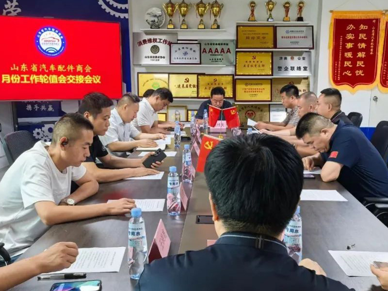 2025年7月8日上午9:30分,为推进商会工作有序开展,根据商会年度及月份轮值会工作计划安排,山东省汽车配件商会月份轮值会工作交接会议在商会秘书处召开。