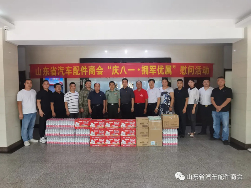 为庆祝中国人民解放军建军96周年,发扬拥军优属优良传统,恰逢八一建军节之际,山东省汽车配件商会于8月2日上午,开展了“庆八一,拥军优属”慰问活动。在会长倪付庆的带领下,商会副会长、退役军人、民兵代表及军人家属携手知名书画家共同来到济南市天桥区武装部,开展拥军优属慰问活动,为子弟兵送来了矿泉水、方便面、洗化用品等节日的慰问品与祝福,并致以了节日的问候。