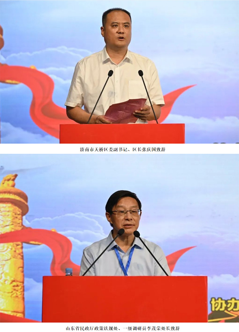 济南市天桥区委副书记、区长张庆国;山东省民政厅政策法规处、一级调研员李茂荣处长;山东省委社会工作部二处、副处长、二级调研员耿子龙处长;山东省工商联组织建设处副处长、二级调研员刘永亮处长分别上台致词,各位领导充分肯定了山东省汽车配件商会成立十年来所做的工作和成就,是与祖国共奋进、与时代同发展的十年。肯定了我商会为国家建设积极参加社会公益事业和参与国家双百扶贫求助活动,以及为山东省汽车配件行业健康发展做出的重要贡献。同时,也提出了更高的要求,呼吁山东省汽车配件商会以成立十周年为新的起点,深入学习贯彻落实习近平新时代中国特色社会主义思想,认真落实省委、省政府关于促进民营经济高质量发展的决策部署,进一步加强自身建设,提高服务能力、质量和水平,不断开创商会工作新局面。同时,也希望广大汽车配件企业能够抓住机遇,走出去,请进来,参与到“一带一路”,拓展海外市场,乘势而上,加大科技创新投入,加快转型升级步伐,不断提高产品质量和核心竞争力,努力在激烈的市场竞争中立于不败之地。要积极履行社会责任,树立良好的企业形象,为推动我省经济社会发展做出更大贡献。