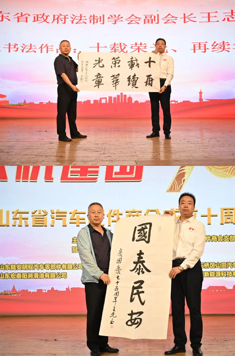 伴随着《难忘今宵》的优美歌声,联欢晚会顺利落下帷幕。十年艰苦奋斗,十年坎坷征程,圆了山东省汽车配件商会创新发展的振兴梦,谱写了商会再创辉煌的光荣史。十年大庆,满腔激情,让我们借庆祝建国75周年暨山东省汽车配件商会成立十周年庆典会员大会的强劲东风,助推商会不断发展,让我们继续携手并进,推动山东省汽车配件商会走得更远,飞得更高,共同续写汽配人的精彩,共同创造美好未来而踔厉奋发,勇毅前行。七十五载春华秋实,商会十载岁月如歌,携手共进谱新篇,共铸辉煌创未来!