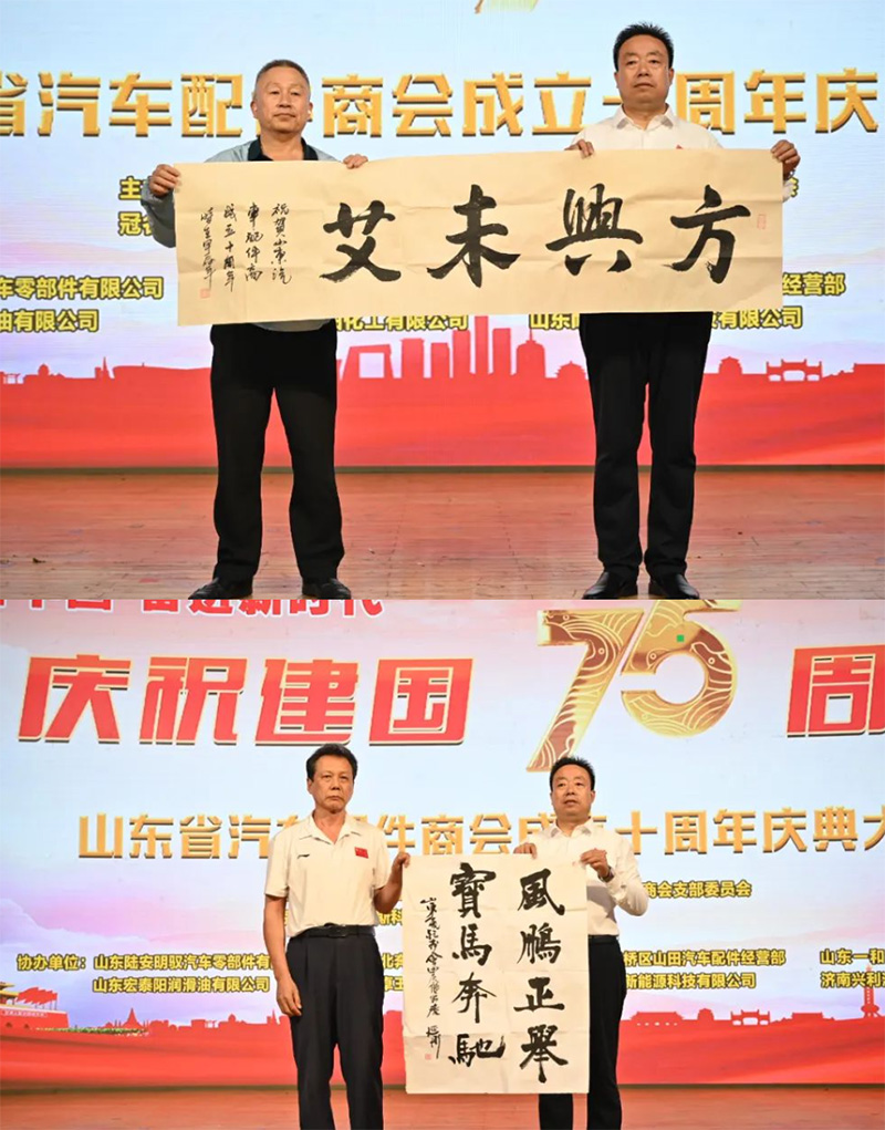 伴随着庄严的国歌,庆祝建国75周年暨山东省汽车配件商会成立十周年庆典全体会员大会正式启幕。山东省汽车配件商会执行会长马天坤同志向全体来宾、会员单位致欢迎辞,在今天这个喜庆的日子里,向我们伟大祖国送上了美好的祝福,同时祝愿山东省汽车配件商会继往开来,再创辉煌。