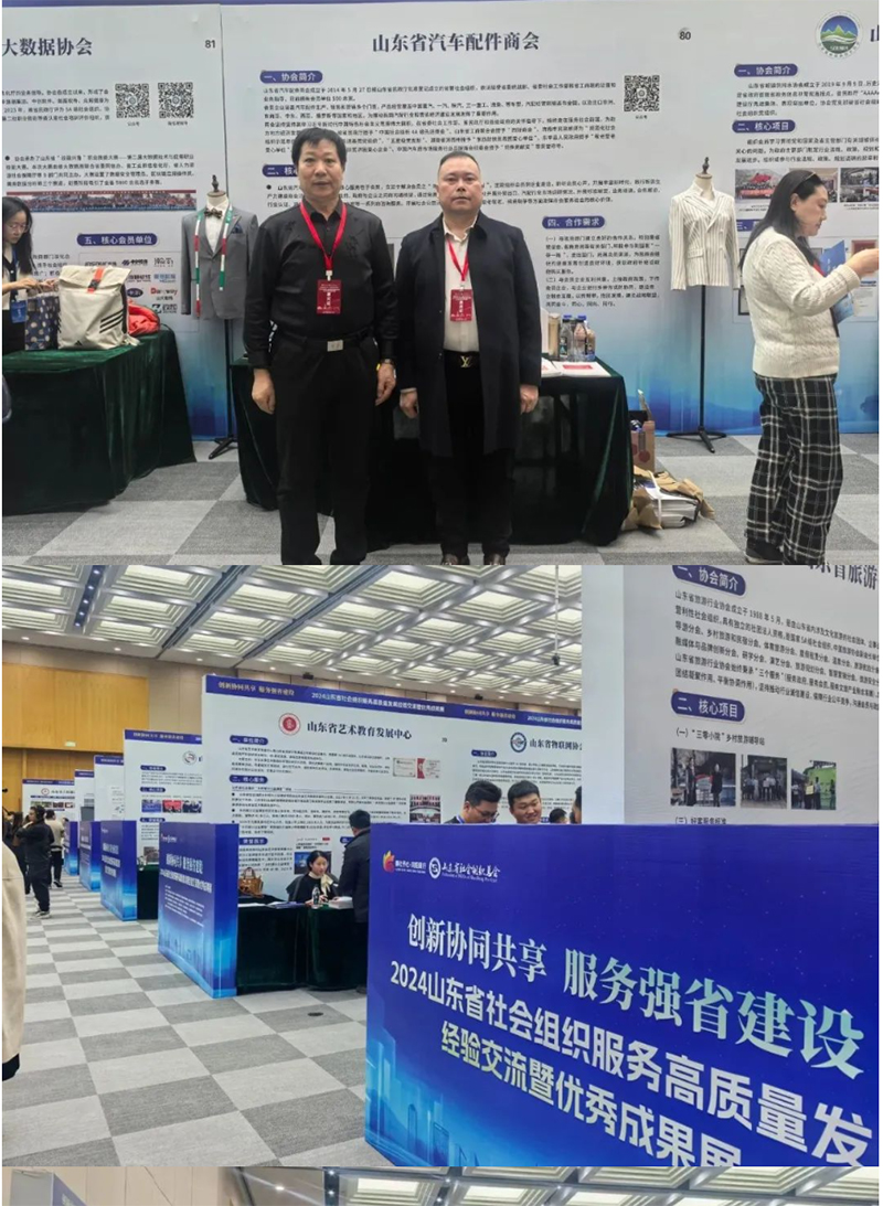 大会发布了山东省社会组织服务高质量发展优秀案例,58家省管社会组织所报送案例入选,由10家省管社会组织围绕社会组织与乡村振兴、公益慈善、社会治理创新、社会组织与行业推动等主题进行了交流分享。山东省民政厅社会组织管理局副局长姬升峰致辞 山东省民政厅社会组织管理局副局长姬升峰作了《建好、管好、用好、服务好,共同塑造山东社会组织高质量发展生态》主题演讲。围绕新时代社会组织怎么看?新时代社会组织怎么办?新时代社会组织怎么干?进行了详细解读。他指出,社会组织要加强自身规范化建设,实现自身高质量发展,在“十项建设”上下功夫,山东省通过打造“一个品牌”、完善“四个体系”、坚持“四好思路”、加强“五项治理”、建设“五个机关”,不断完善社会组织管理与服务工作,持续塑造社会组织高质量发展的政治生态、法治生态、成长生态、政务生态。 受会长倪付庆委托,商会秘书长敬同如、商会副会长、济南人和利国服饰有限公司总经理王允国带队参加本次优秀成果展。 本次成果展会旨在全面总结我省社会组织在服务经济社会发展、助力国家战略、增进民生福祉等方面的有益做法,深入交流社会组织开展“强服务、走基层、建新功”活动经验,引导社会组织积极服务国家、服务社会、服务群众、服务行业。 山东省汽车配件商会将以本次社会组织服务高质量发展经验交流暨优秀成果展为契机,继续高举习近平新时代中国特色社会主义思想伟大旗帜,深入贯彻落实党的二十届三中全会精神,在社会组织服务中走在前列,干在实处,发挥好政府密切联系会员群众的桥梁纽带作用,团结、奋斗、同心、同向,奋力谱写新时代山东省汽车配件商会高质量发展新篇章。
