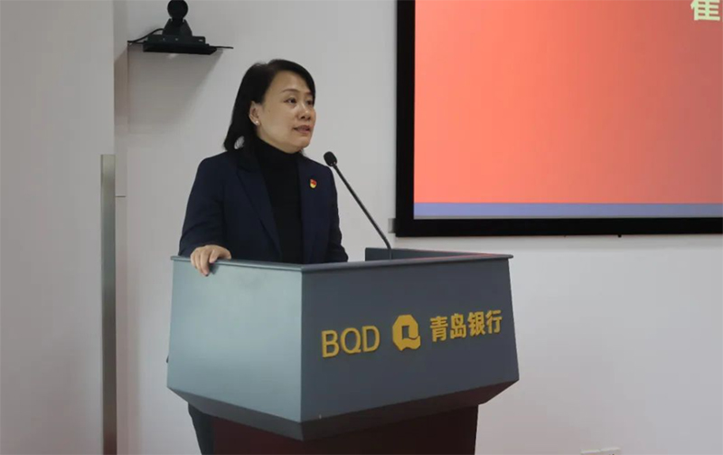 崔丽明行长为商会颁发《青岛银行五星合作伙伴》牌匾,山东省汽车配件商会会长倪付庆上台接牌。青岛银行济南分行科创普惠金融部产品经理门杰讲解了《青岛银行“青馨智汇”山东省汽车配件商会客户专属服务方案》 青岛银行交易银行部产品经理张瑛讲解了《当前中美关系下出口企业如何应对挑战》专题培训