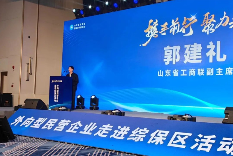山东省工商联副主席郭建礼在致辞中表示,省工商联、省总商会支持举办“外向型民营企业走进综保区”活动,为抓稳外贸,实现首季“开门红”贡献一份力量。希望通过此次活动的举办,为企业带来行业前沿信息和投资兴业的切入点,助力企业开展国际贸易业务。省工商联将进一步立足民营企业实际需求,与综保区发挥各自优势,为服务外向型民营企业寻求新的发展机遇搭建更多平台,助力民营企业实现更好发展。