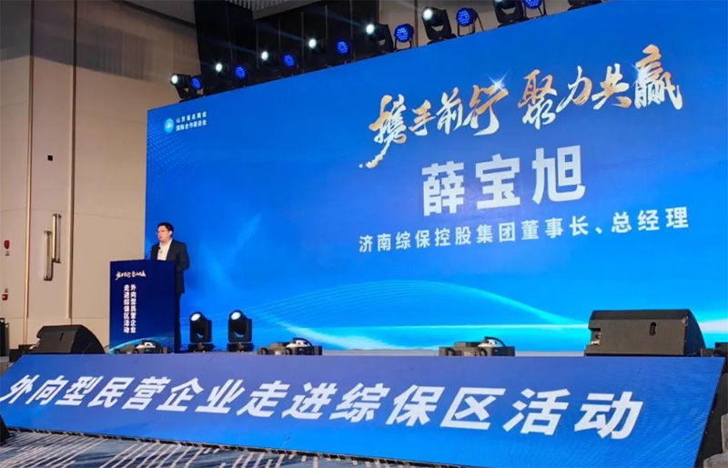 济南综保控股集团董事长、总经理薛宝旭就济南综保控股集团做专题推介,他表示济南综保控股集团将在大力发展民营经济培优育强经营主体上聚焦用力,创新优化服务管理机制,联合进出口实体企业及金融机构,搭建集仓储物流、货物保管、供应链管理等功能为一体的进出口企业服务平台,实现破壁垒、解难题、优服务,促进企业抱团发展,助力外向型实体经济高质量发展,实现政府、国企、民企、金融机构多方共赢。