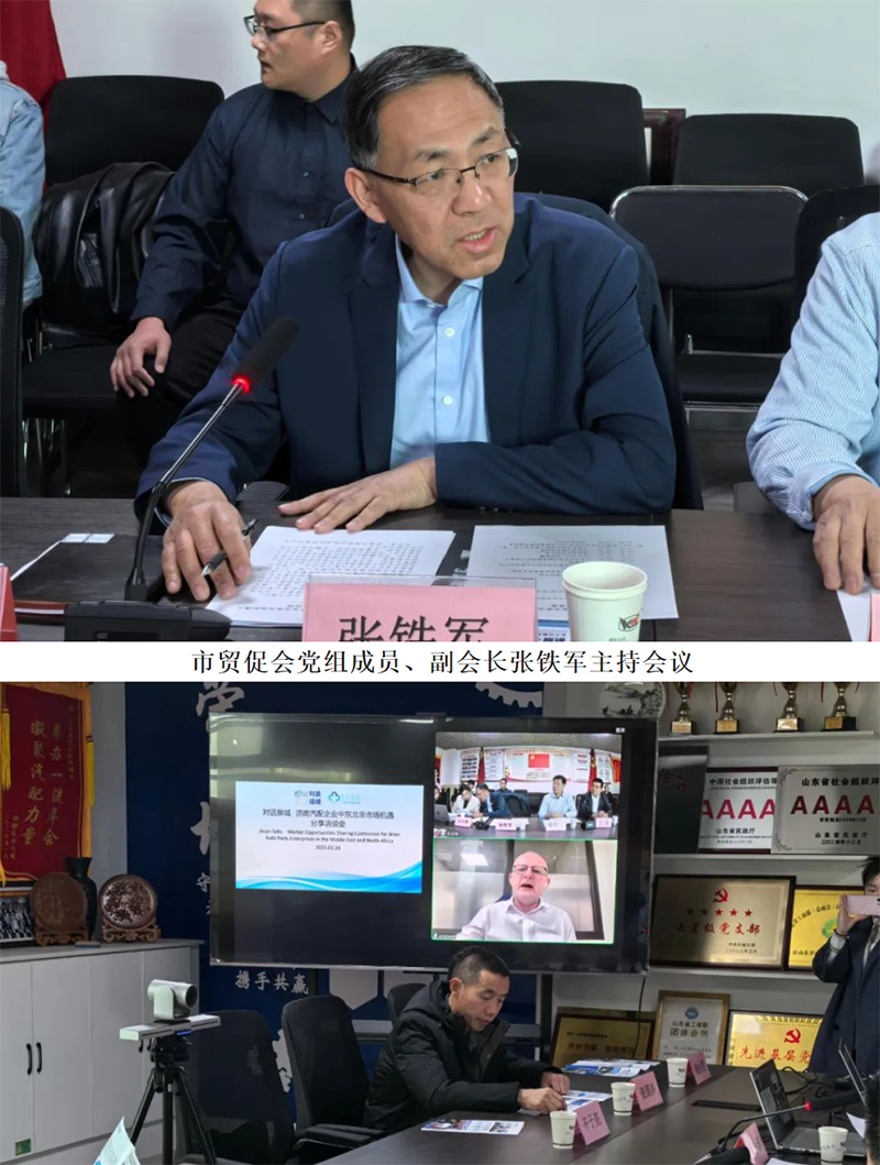 2025年3月19日下午15时,济南市贸促会“对话泉城・济南汽配企业中东北非市场机遇分享洽谈会”在商会党建会议室召开。