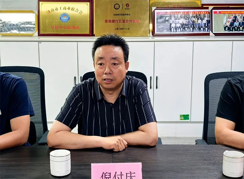 商会会长倪付庆对省公安厅食药环侦总队及济南市公安局领导的到来表示热烈欢迎,并简要介绍了商会的发展历程、组织架构以及会员企业的基本情况。倪付庆会长指出,随着汽车配件行业的快速发展,知识产权保护对于企业的创新发展和市场竞争愈发重要,商会一直高度重视并积极推动相关工作,但在实际操作中仍面临一些困惑和挑战,希望能得到公安机关的专业指导和支持。